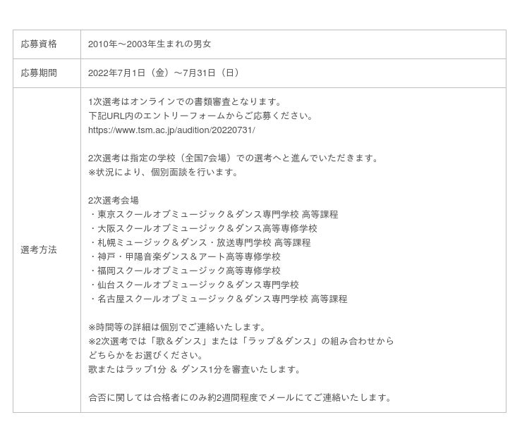 高等課程だけでなく専門課程でもK-POPコースのあるTSM。韓国の芸能事務所との関係性は日本の専門学校でもトップクラスです。その縁もあって今回のオーディションを開催することになりました。