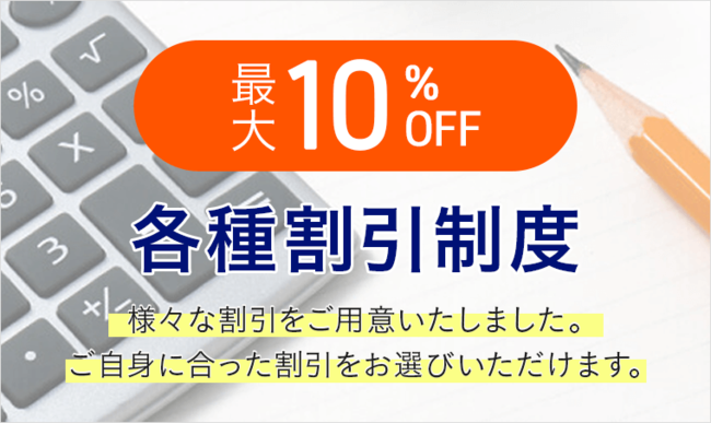 最大10%OFF!各種割引制度を設けております。