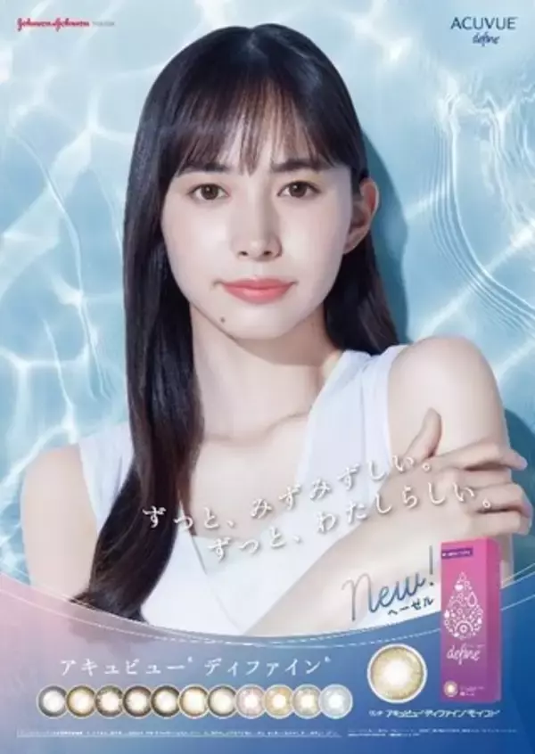 健やかでクリアな視界で、人々のクオリティ・オブ・ビジョンの向上に貢献するコンタクトレンズブランド「アキュビュー(R) 」を提供するジョンソン・エンド・ジョンソン株式会社 ビジョンケア カンパニー(本社:東京都千代田区 代表取締役プレジデント:森村 純)は、「ワンデー アキュビュー(R) ディファイン(R) モイスト(R) 」の新色「フレッシュ ヘーゼル」(1箱10枚入り/30枚入り)を2022年7月15日(金)から、全国の一部店舗にて発売します。それに伴い、同シリーズのイメージキャラクターに女優・モデルの井桁弘恵さんを起用し、新Web-CM「アキュビュー(R) ディファイン(R) 私らしい瞳」篇、「アキュビュー(R) ディファイン(R) もう無理しない」篇(各15秒)を2022年7月15日(金)より公開いたします。