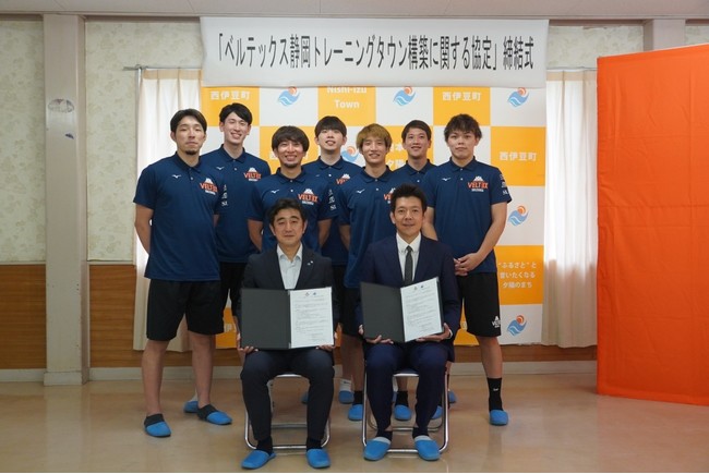 この協定は、ベルテックス静岡および西伊豆町の持つ資源を有効活用しながら、ベルテックス静岡が西伊豆町をトレーニング地として利用させていただき、選手と地域との交流を深め“夢を語れる人を育むまちづくり”の推進を図ることを目的としています。
