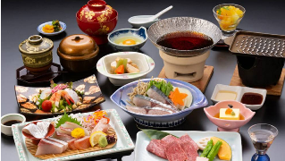 Point2.季節の創作会席料理+お宿自慢のお風呂付