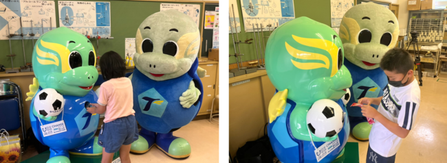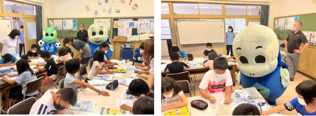 「NEETAN FOR THE BLUE 考えよう!大分の海洋ごみ」と題して制作した、児童に大人気の大分トリニータマスコットキャラクター”ニータン”が登場する動画とテキストは、海洋ごみについてニータンと一緒にわかりやすく学べるようになっており、参加した児童にも好評でした。動画を見てテキストでおさらいした後にはニータンがサプライズで登場し、児童の皆さんは喜んでいました。