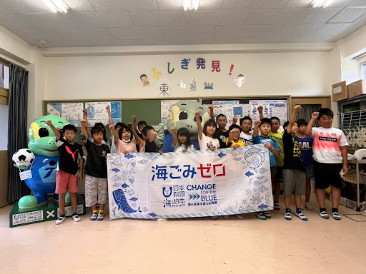 CHANGE FOR THE BLUE in大分実行委員会は、株式会社大分フットボールクラブ・大分県うつくし作戦推進課とタイアップし、7月5日(火)に海洋ごみに関する「NEETAN FOR THE BLUE」出前授業を実施しました。今回の出前授業は、大分県うつくし作戦推進課が実施する環境教育学習「皆で作るプラごみアートPROJECT」のコンテンツの一つとして実施されました。