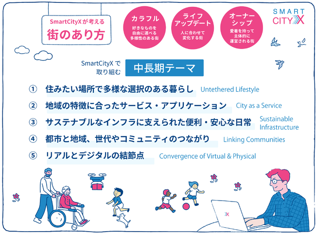 『SmartCityX』は、一人ひとりのニーズに合った選択があり、多様な幸せが実現できる社会づくりに挑戦してまいります。