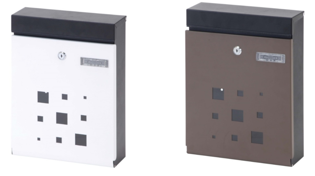 投函口は一般的なメール便が入るサイズ(26.5cm×3.3cm)なので、新聞や雑誌も折り曲げずに縦にすっぽり入ります。取り出す際には、前面を開くことで簡単に取り出せます。カラーは定番のホワイトとブラウンの2色。パウダー塗装を施し、マットな質感に仕上げました。