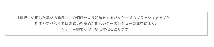 濃いシチューシリーズとして継続的に提案をしてきたチーズ味種商品においては、「季節感」や「特別感」への