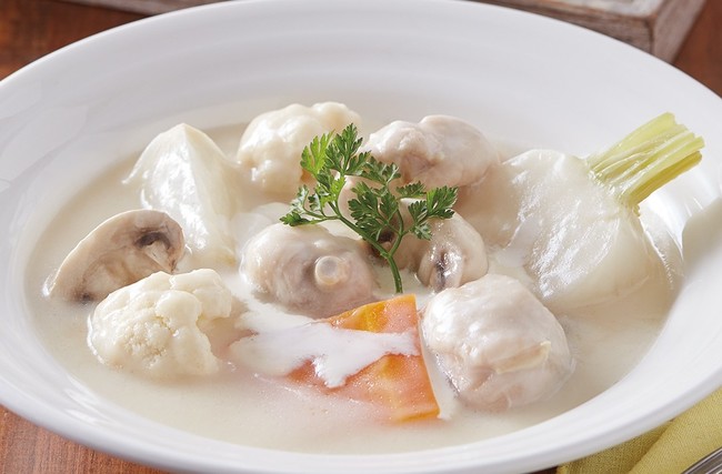 クリームには北海道産特濃純生クリームを100%使用し、フォン・ブラン※とバターミルクが厚みのあるおいしさを引き立てるクリームシチューです。