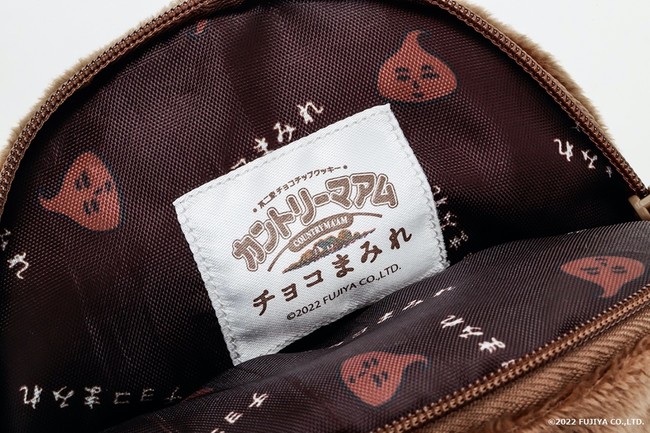 ポーチの裏地は「チップくん」のイラストと「チョコまみれ」公式ロゴの総柄。