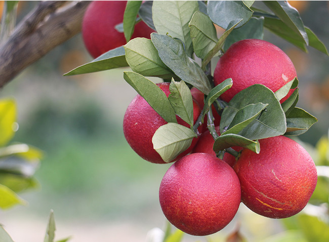 みかんの産地で有名な和歌山県有田郡湯浅町に位置する近畿大学附属湯浅農場では、農学部の学生約60人と技術員が多種にわたる柑橘を丹精込めて育てています。ブラッドオレンジは、果皮と果肉にアントシアニン色素を含む真っ赤な柑橘で、爽やかな酸味と甘味、濃厚なコクが特徴です。