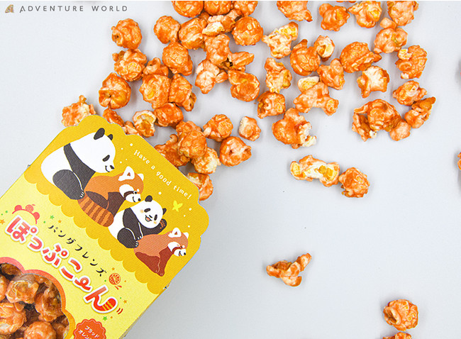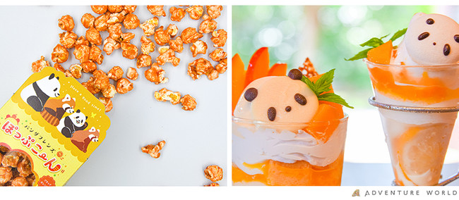 「近大柑橘」を使用したお菓子は、現在販売中の『ぱんだの手むきみかんバウム 近大みかん使用』に続く第2弾で、今回は、ブラッドオレンジを使用したポップコーン『パンダフレンズ ぽっぷこーん 近大柑橘・ブラッドオレンジ使用』を8月6日(土)より販売いたします。