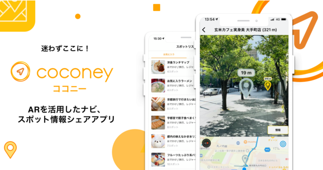 『coconey(ココニー)』は、ARナビ×スポット情報のシェアから生まれる新たな移動体験で、おでかけをもっと楽しくするサービスです。