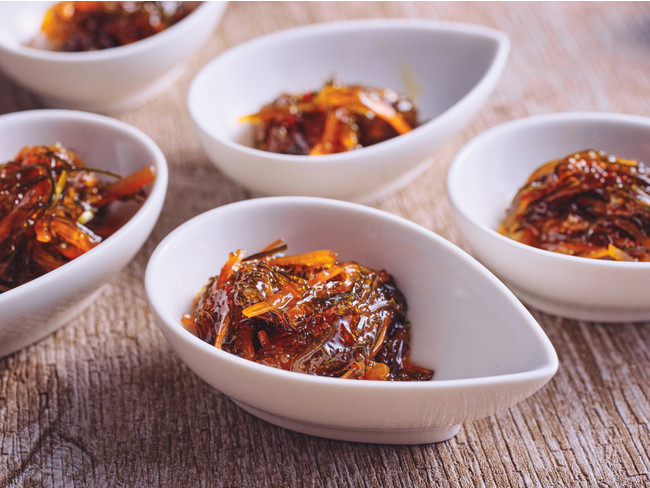 松前漬け / イカと北海道産白いんげん豆のサラダ / バナメイ海老と北海道産とうもろこし など