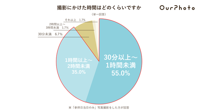 「参拝当日のみ写真撮影を実施した」方は、時短で済ませたい傾向があるため、写真撮影にかかる時間も全体的に短い傾向がみられる。