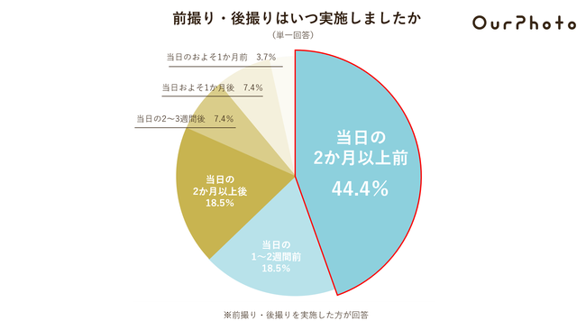 6. 前撮り・後撮りを実施した時期で最も多かったのは「当日の2か月以上前」(44.4%)
