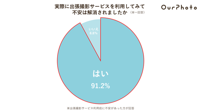 ・出張撮影サービスの不安、利用後に約9割が解消されたと回答<結果4>