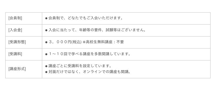 ※ 対面講座では感染予防対策を万全にして皆様をお迎えし、オンライン講座ではいつでもどこでも学べるようzoomでのライブ配信とともに録画したものを見逃し配信として開講翌日以降7日間実施します。