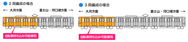 1.持込車両 大月~富士山間での大月方1両(1号車)のみ ※一般客のご乗車も可能です。