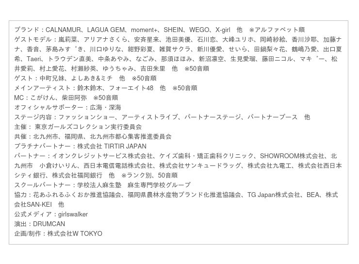 公式サイト :https://tgc.girlswalker.com/kitakyushu/2022/