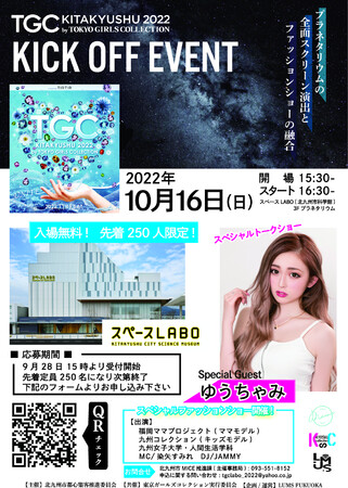 2019年にTGC北九州5周年を記念して開催されたキックオフイベント「TGC北九州 5th Anniversary COLLECTION」にも出演した九州女子大学の学生や、お洒落なティーンズが一同に集結する「九州コレクション」出演キッズモデル、さらに、福岡のmamaたちの力で、お店や企業、福岡の街全体を盛り上げる「福岡ママプロジェクト」所属のママさんモデルによるファッションショーに加え、スペシャルゲストとして2022年上半期にブレイクした女性タレント第1位に輝くなど“令和の白ギャル”として多数のバラエティー番組に出演し、TGC 北九州 2022にも出演が決定しているゆうちゃみを迎え、トークショーを実施します。
