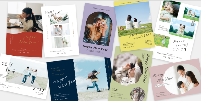 また、写真年賀状でデザイン作成時に選択できる背景カラーを一新いたしました。流行のくすみカラーと、どんな写真とも相性の良い深みのあるカラーを追加し、より多彩なパターンの年賀状作りが可能に。お好みに合わせてお選びいただくことができます。