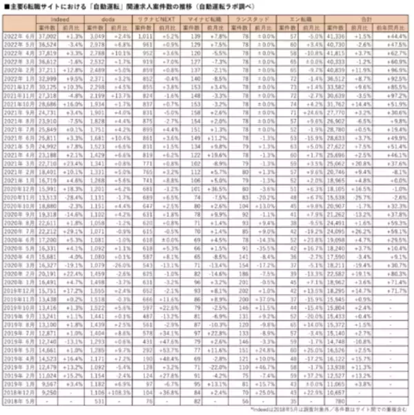 「自動運転」求人、前年比44%増の4万1,336件 2022年6月末調査