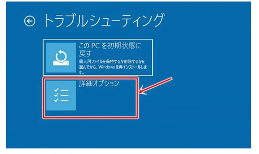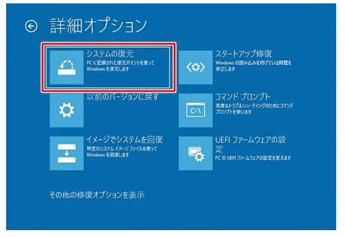 Step3:「詳細オプション」を選択し「システムの復元」をクリックします。
