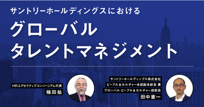本セミナーでは、サントリーホールディングス株式会社でピープル&カルチャー本部副本部長 兼 グローバル ピープル&カルチャー部 部長として活躍しておられる田中氏をお招きし、「サントリーホールディングスにおけるグローバルタレントマネジメント」についてお話しいただきます。