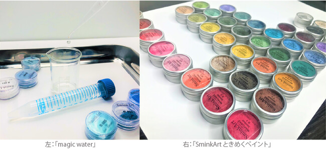 モーンガータはこれらの課題に対して、廃棄される化粧品バルクを自社特許技術であるmagic waterを用いて、絵の具・墨汁などの画材としてだけでなく、ジェルネイル・アクセサリー・キーホルダー・キャンドル・レンガなどの雑貨創作に活用できる色材(SminkArt(R) ときめくペイント)を開発し、提供してきました。このように様々な用途で使用できる上に、化粧品からできていることから肌付着時のリスクも低く、さらには既存の色材にはない化粧品特有のニュアンスで表現できることから、その需要は高まっています。