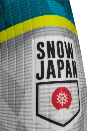 大胆に配色された「ホワイト」と「ターコイズグリーン」のカラーは、冬山の「雪」と「自然」を表現し、「イエロー」ラインは、輝く選手の軌跡をイメージしてデザインしています。