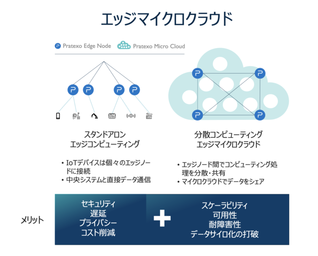 エッジコンピューティングプラットフォームのリーディングカンパニーであるPratexo, Inc.(以下、「Pratexo」又は「プラテクソ」)は、クラウドコンピューティングのメリットをエッジで享受できる次世代エッジコンピューティングプラットフォームを開発し日本市場で営業を開始しました。Pratexoエッジマイクロクラウドは、オープンで実績に裏付けられた技術を採用したスケーラビリティ、耐障害性、プライバシー、セキュリティレベルの高いプラットフォームです。