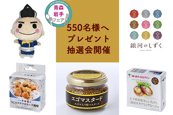”ホテルメトロポリタン LINE公式アカウント”の友だちになっていただき、期間中にオールデイダイニング「クロスダイン」、四季彩茶寮「旬香」にて“青森・岩手フェア対象メニュー”をお召し上がりいただきアンケートにお答えいただいたお客さま。