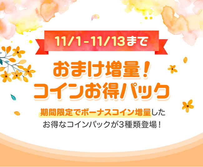 「マンガMee」はアプリ内で購入することで好きなタイミングで作品を読めるコインと、コインの購入時などにおまけで獲得できるボーナスコインの2つの機能でより楽しいマンガ体験を提供しています。11月1日から11月13日の期間限定で、コインを購入した際のボーナスコインが増量される「コインお得パック」が登場。通常は650コインの購入で30ボーナスコインがもらえますが、期間中は100ボーナスコインがもらえます。