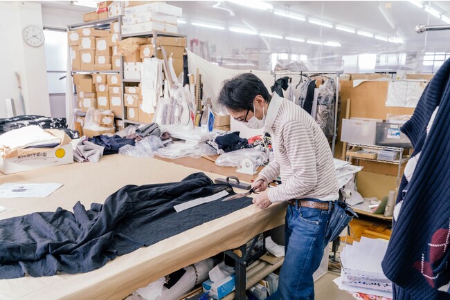 当社の商品は高級ブランドを手掛ける老舗工場で、熟練の職人が一枚一枚、丁寧に縫製しています。(衣料品の国内生産は僅か2.3%)