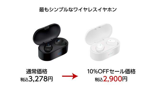 最もシンプルでリーズナブルな完全ワイヤレスイヤホン FG-BTM01 通常価格 税込3,278円 → 10%OFFセール価格 税込2,900円
