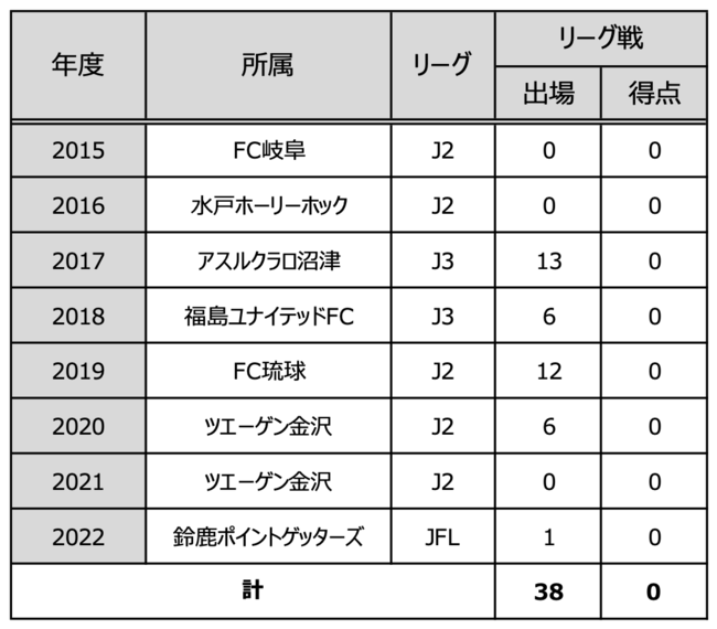 J2リーグ 18試合(0得点) / J3リーグ 19試合(0得点)