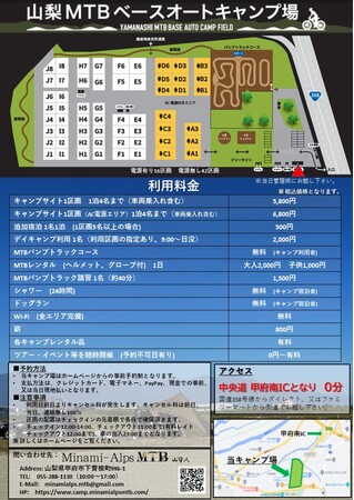 ・会員数280名を誇る、国内最大のマウンテンバイク会員「南アルプスMTB山守人」の活動拠点でもあり、このキャンプ場を起点に山梨県全域のマウンテンバイクフィールドへ発着しています。