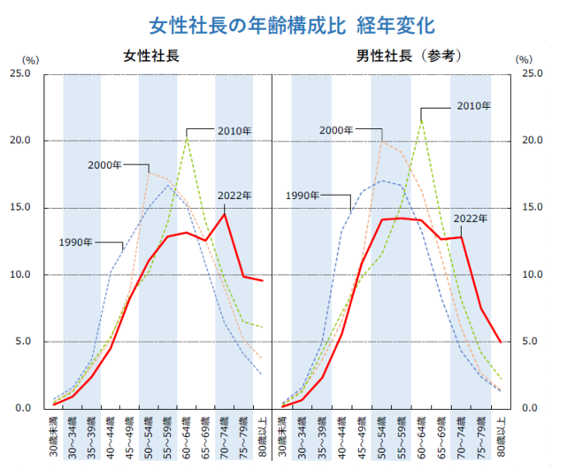 年齢構成比、女性社長は「70~74歳」が14.5%で最多 高齢化に歯止めかからず