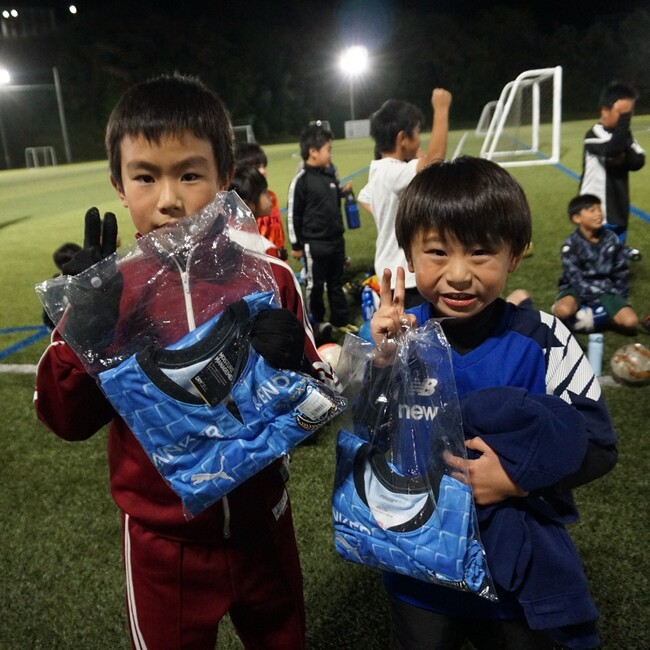 普段より難易度が高いサッカー技術の指導に、子どもたちは真剣に取り組んでいました。各部の最後にはお楽しみ企画として川崎フロンターレの選手サイン入りユニフォームなどが当たるじゃんけん大会を行い、子どもたちの元気いっぱいの笑顔で3年ぶりのサッカー教室を終えました。