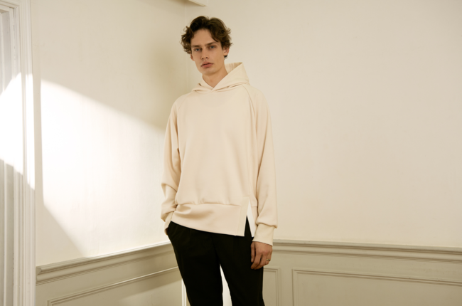 ミニマルで合わせるものを選ばないパーカーは、ワードローブに備えておきたいアイテムです。