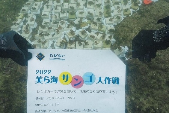 株式会社パム(本社:沖縄県那覇市、社長:長嶺 由成)と、オリックス自動車株式会社(本社:東京都港区、社長:上谷内 祐二)は、2022年7月1日(金)~9月30日(金)の期間、オリックスレンタカーのご利用料金の一部をサンゴ保全活動へ拠出する「美ら海サンゴ大作戦2022」キャンペーン※を実施し、このたび、拠出金の活用により養殖サンゴ111本の植え付けが完了しましたのでご報告します。