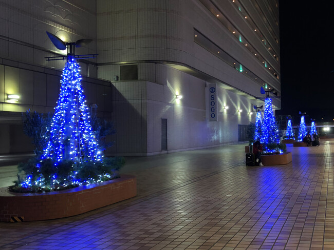 スカイビルと横浜新都市ビル(そごう横浜店)を繋ぐ2階ペデストリアンデッキ「はまテラス」では今年もイルミネーションを開催しております。