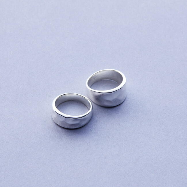 今回メインとなる「Yuragi」コレクションは、ブランド名の”AQUA=水”を体現したデザイン。透き通る水面のゆらぎをイメージし、ゆらぎが奏でる優しい水音が聞こえてきそうな美しいフォルム。そんな癒しや安らぎを与えてくれるゆらぎの水音が届くことを願ってデザインされたシリーズです。シルバー素材と表面のフィニッシュで、さまざまに形を変える水の揺らぎや波打つさまを表現しています。