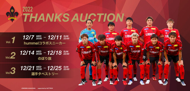 ツエーゲン金沢の選手会主催のもと、12月7日(水)20:00を皮切りに3週間にわたってオークションが実施されます。