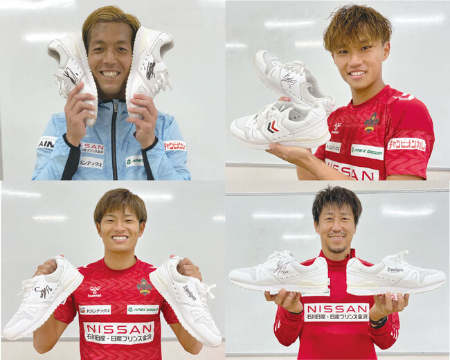 今シーズン公式戦の移動などで選手たちが実際に着用した大変貴重なスニーカーとなります。今回はその貴重なスニーカーに、今シーズン応援していただいたファン・サポーターの皆さまへの感謝の気持ちを込めて、選手の直筆サイン入りでお届けいたします!!