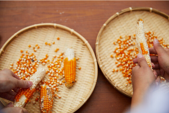 『フリークス電気』は電気料金の一部がNPO法人シナノソイルの県内の耕作放棄地を蘇らせる活動にあてられるFREAK‘S STOREと「みんな電力」が協業して立ち上げられたプロジェクトで、シナノソイルの協力のもと開墾された畑で農薬を使用せず栽培されたポップコーン用品種のトウモロコシから作られたポップコーン「爆裂!シナノポップ」が、現在FREAK’S STOREで販売されています。 純国産のトウモロコシから作られたポップコーンは希少性が高く、“そのまま”の状態で真空パックに詰められたトウモロコシを芯のまま電子レンジで加熱するだけで食べられる新感覚のポップコーンです。