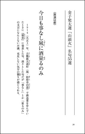 選句にあたって 「感覚で射止めた山頭火の句には、従来の俳句にはない新鮮な感銘がある」