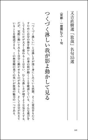 ▲選句された110句は大きめの活字を使い、コンパクトな新書判ながら1句1句をじっくり鑑賞しやすくなっている。