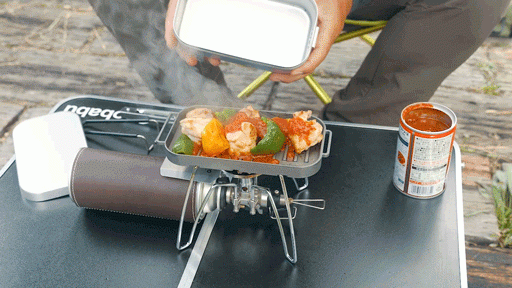 プレートをメスティンにスタッキングすることでコンパクトに収納でき、最低限の荷物でご飯とおかずを作れるようになりました。