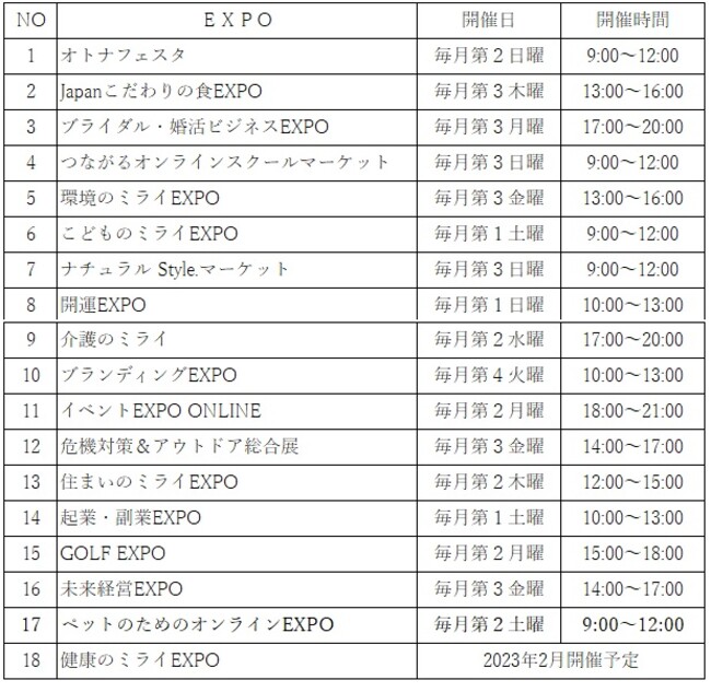 ンEXPO」開業1周年の記念アワードを成功させた。そして今年12月にはメタバースバーチャル展示会を初開催する。これまで18企画のオンラインEXPOをスタートさせ、開催数は100回以上、のべ出展は2,300社を超え、月間2,000名の来場を誇る。