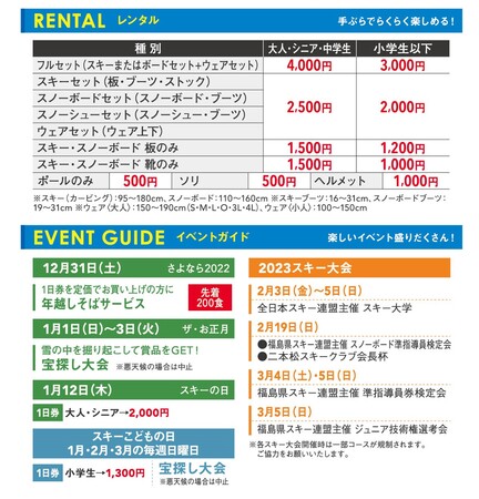 あだたら高原スキー場では、年末年始にかけて様々なイベントを実施いたします。
